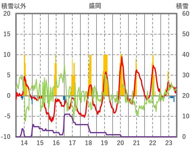 | 日 | 時 | 気温 | 降水 | 風向/風速 | 日照 | 積雪 | 降雪 |