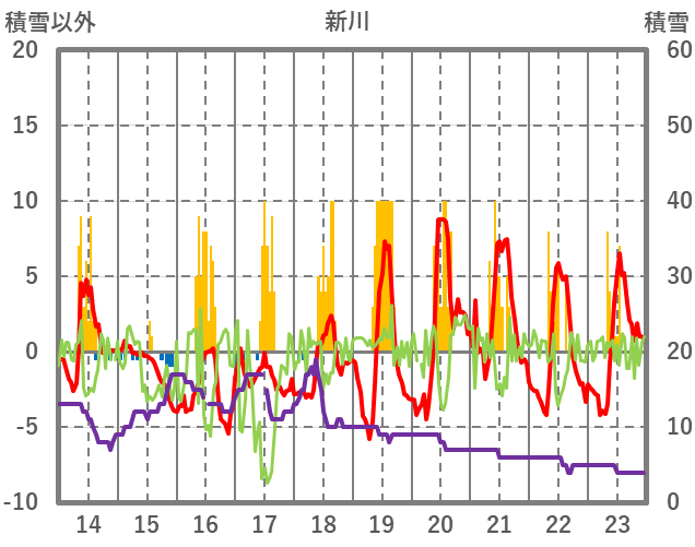 | 日 | 時 | 気温 | 降水 | 風向/風速 | 日照 | 積雪 | 降雪 |