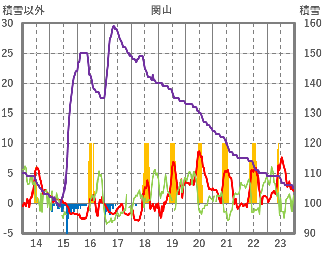 | 日 | 時 | 気温 | 降水 | 風向/風速 | 日照 | 積雪 | 降雪 |