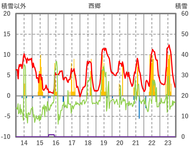 | 日 | 時 | 気温 | 降水 | 風向/風速 | 日照 | 積雪 | 降雪 |
