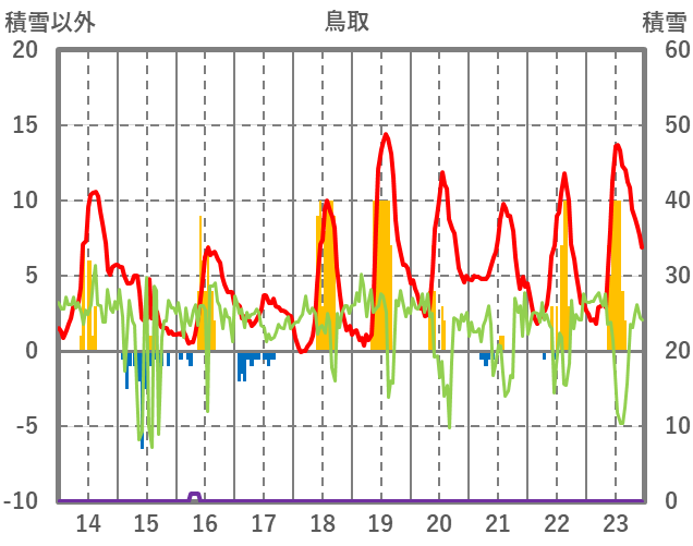 | 日 | 時 | 気温 | 降水 | 風向/風速 | 日照 | 積雪 | 降雪 |