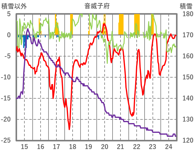 | 日 | 時 | 気温 | 降水 | 風向/風速 | 日照 | 積雪 | 降雪 |