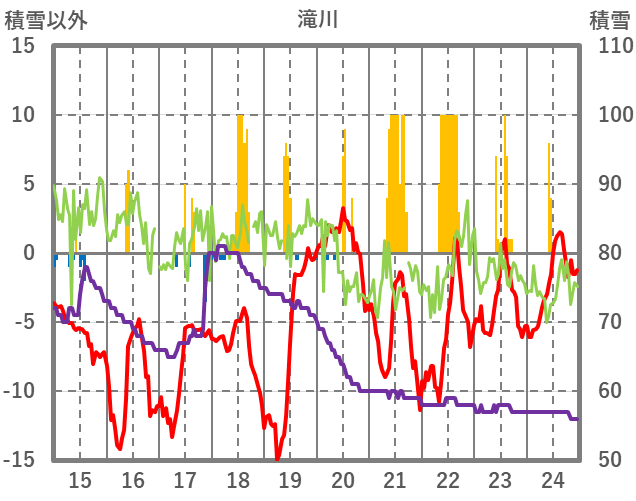 | 日 | 時 | 気温 | 降水 | 風向/風速 | 日照 | 積雪 | 降雪 |
