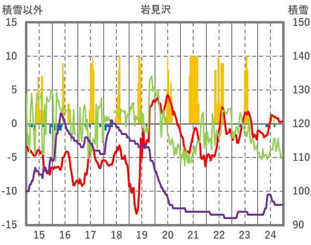 | 日 | 時 | 気温 | 降水 | 風向/風速 | 日照 | 積雪 | 降雪 |
