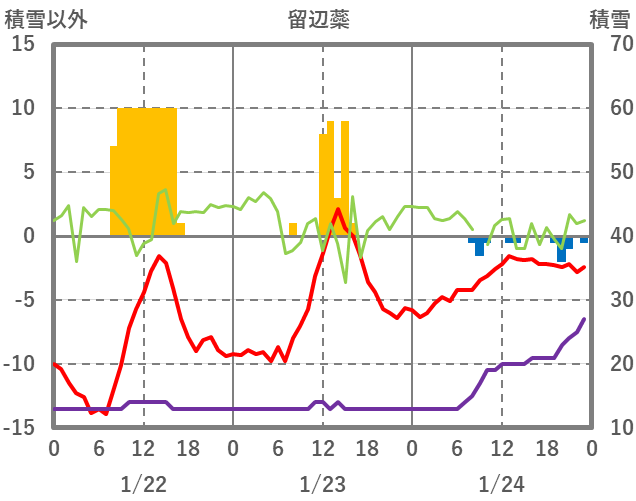 | 日 | 時 | 気温 | 降水 | 風向/風速 | 日照 | 積雪 | 降雪 |
