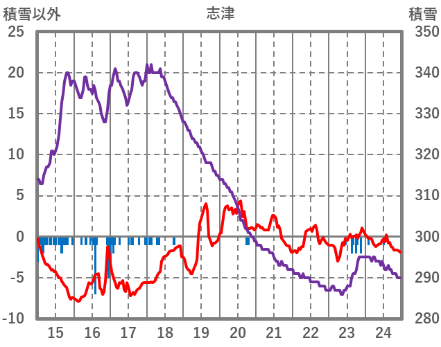 | 日 | 時 | 気温 | 降水 | 風向/風速 | 日照 | 積雪 | 降雪 |