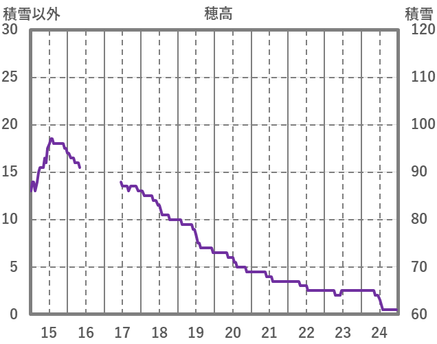 | 日 | 時 | 気温 | 降水 | 風向/風速 | 日照 | 積雪 | 降雪 |