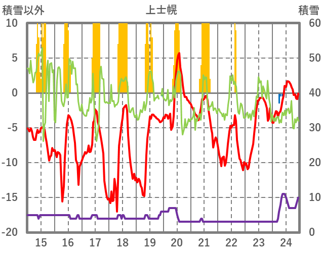 | 日 | 時 | 気温 | 降水 | 風向/風速 | 日照 | 積雪 | 降雪 |
