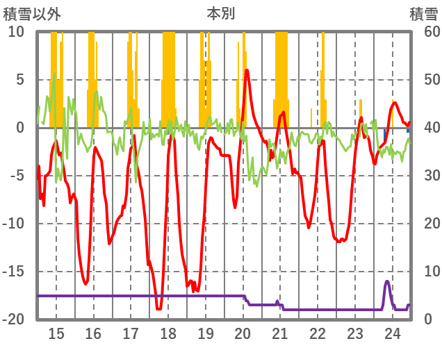 | 日 | 時 | 気温 | 降水 | 風向/風速 | 日照 | 積雪 | 降雪 |