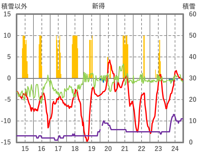 | 日 | 時 | 気温 | 降水 | 風向/風速 | 日照 | 積雪 | 降雪 |
