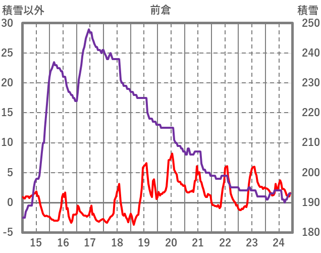 | 日 | 時 | 気温 | 降水 | 風向/風速 | 日照 | 積雪 | 降雪 |