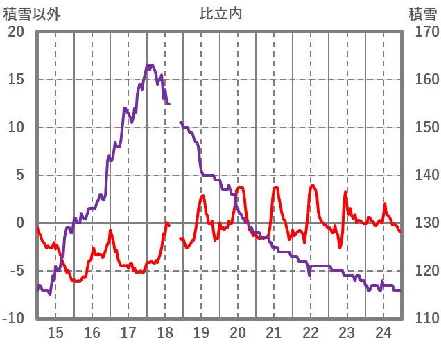 | 日 | 時 | 気温 | 降水 | 風向/風速 | 日照 | 積雪 | 降雪 |