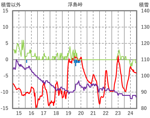 | 日 | 時 | 気温 | 降水 | 風向/風速 | 日照 | 積雪 | 降雪 |
