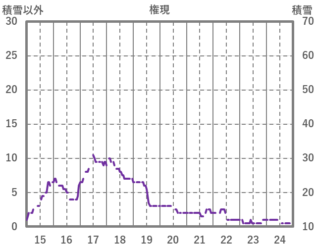 | 日 | 時 | 気温 | 降水 | 風向/風速 | 日照 | 積雪 | 降雪 |
