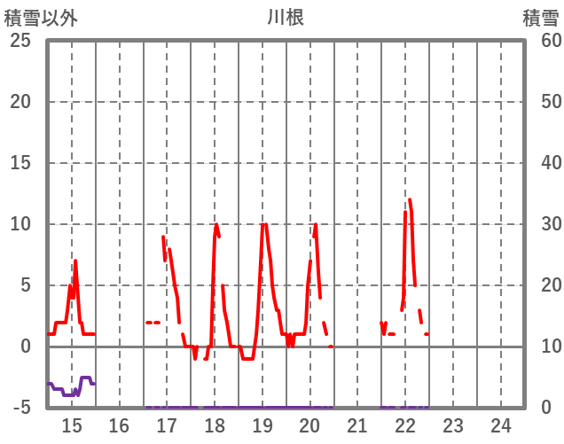| 日 | 時 | 気温 | 降水 | 風向/風速 | 日照 | 積雪 | 降雪 |