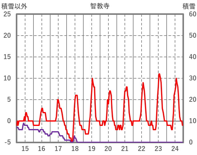 | 日 | 時 | 気温 | 降水 | 風向/風速 | 日照 | 積雪 | 降雪 |