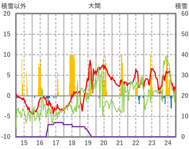 | 日 | 時 | 気温 | 降水 | 風向/風速 | 日照 | 積雪 | 降雪 |