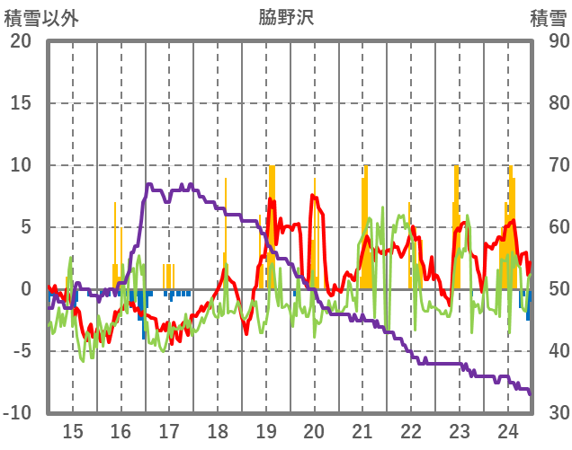 | 日 | 時 | 気温 | 降水 | 風向/風速 | 日照 | 積雪 | 降雪 |