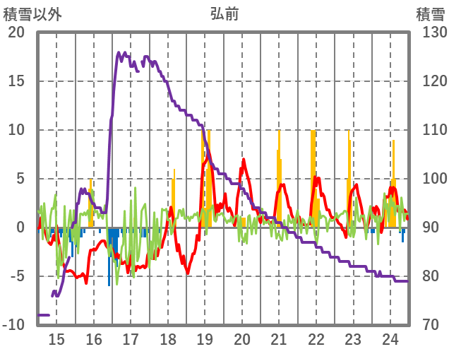 | 日 | 時 | 気温 | 降水 | 風向/風速 | 日照 | 積雪 | 降雪 |