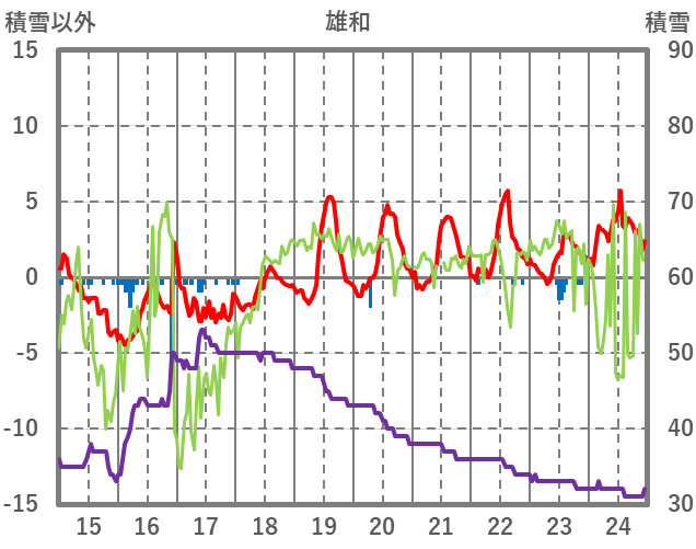 | 日 | 時 | 気温 | 降水 | 風向/風速 | 日照 | 積雪 | 降雪 |