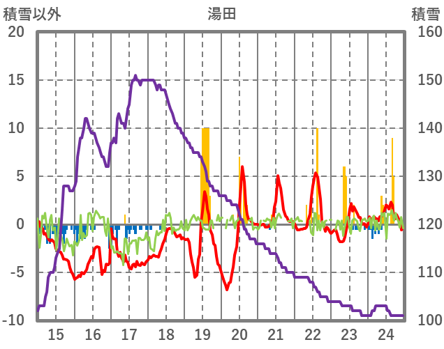 | 日 | 時 | 気温 | 降水 | 風向/風速 | 日照 | 積雪 | 降雪 |