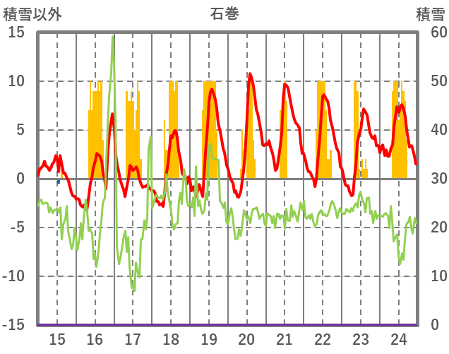 | 日 | 時 | 気温 | 降水 | 風向/風速 | 日照 | 積雪 | 降雪 |