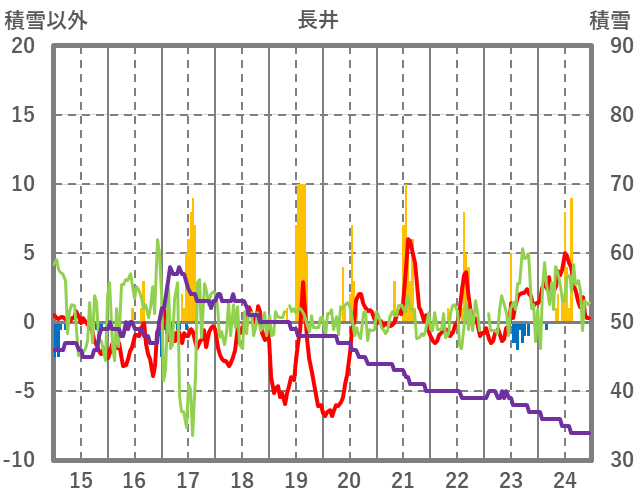 | 日 | 時 | 気温 | 降水 | 風向/風速 | 日照 | 積雪 | 降雪 |