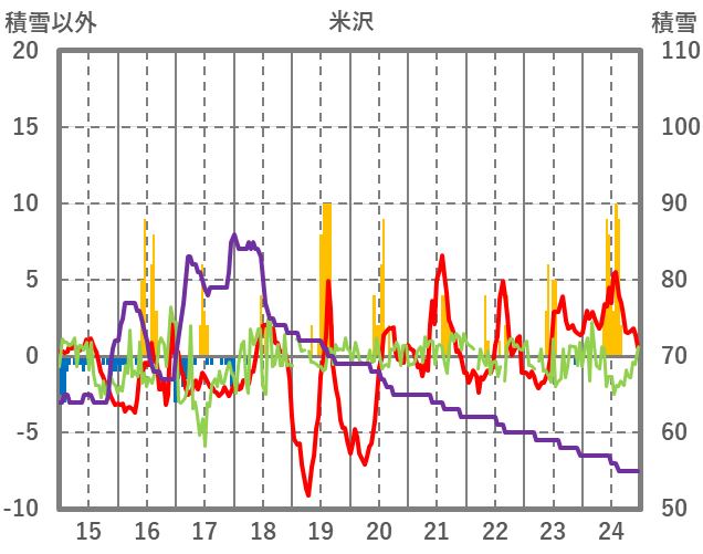 | 日 | 時 | 気温 | 降水 | 風向/風速 | 日照 | 積雪 | 降雪 |