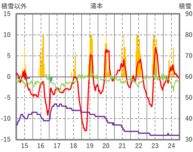 | 日 | 時 | 気温 | 降水 | 風向/風速 | 日照 | 積雪 | 降雪 |