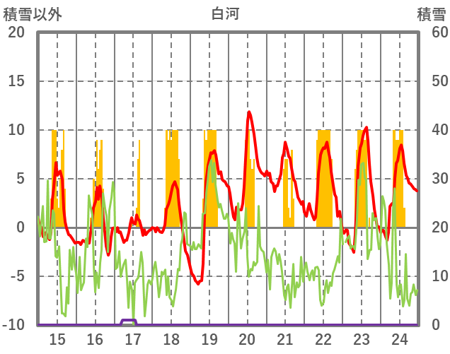 | 日 | 時 | 気温 | 降水 | 風向/風速 | 日照 | 積雪 | 降雪 |