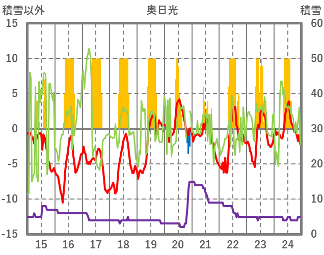 | 日 | 時 | 気温 | 降水 | 風向/風速 | 日照 | 積雪 | 降雪 |