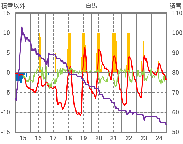 | 日 | 時 | 気温 | 降水 | 風向/風速 | 日照 | 積雪 | 降雪 |