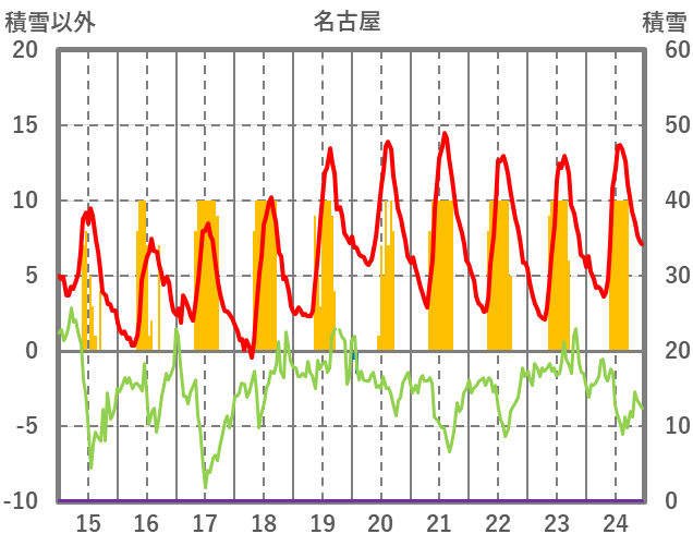 | 日 | 時 | 気温 | 降水 | 風向/風速 | 日照 | 積雪 | 降雪 |