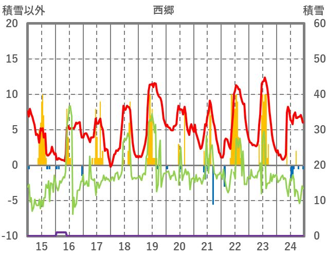 | 日 | 時 | 気温 | 降水 | 風向/風速 | 日照 | 積雪 | 降雪 |