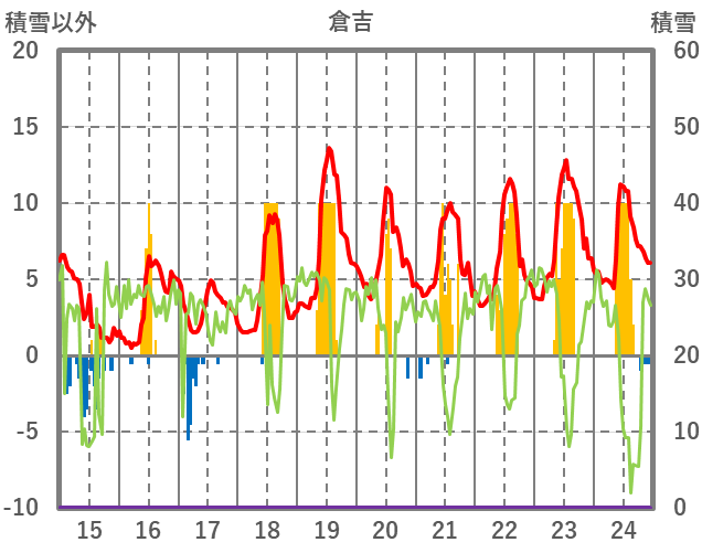 | 日 | 時 | 気温 | 降水 | 風向/風速 | 日照 | 積雪 | 降雪 |