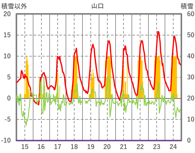 | 日 | 時 | 気温 | 降水 | 風向/風速 | 日照 | 積雪 | 降雪 |