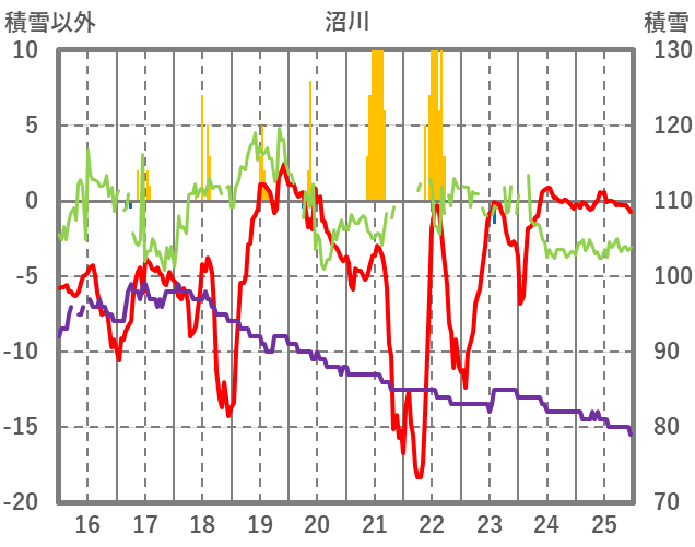 | 日 | 時 | 気温 | 降水 | 風向/風速 | 日照 | 積雪 | 降雪 |