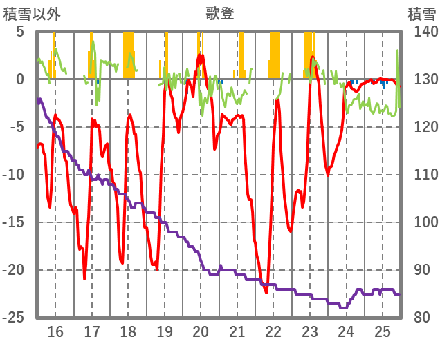 | 日 | 時 | 気温 | 降水 | 風向/風速 | 日照 | 積雪 | 降雪 |