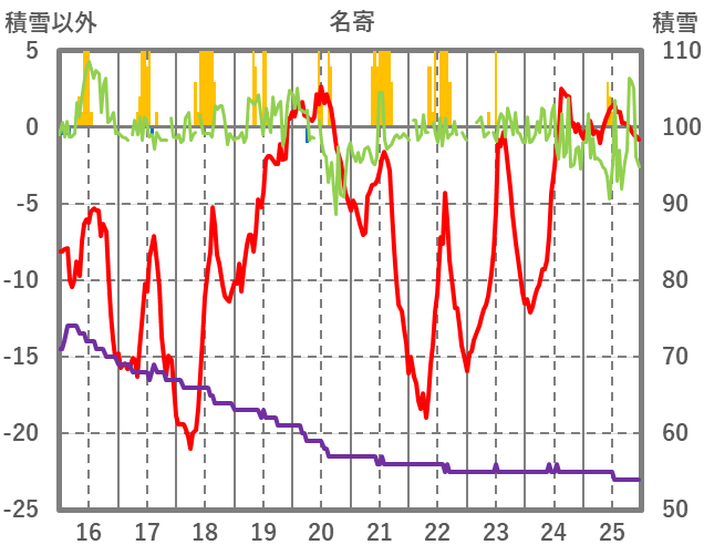 | 日 | 時 | 気温 | 降水 | 風向/風速 | 日照 | 積雪 | 降雪 |
