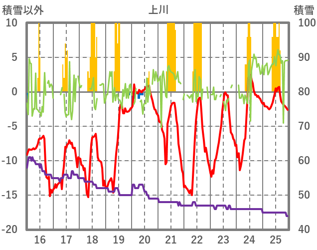 | 日 | 時 | 気温 | 降水 | 風向/風速 | 日照 | 積雪 | 降雪 |