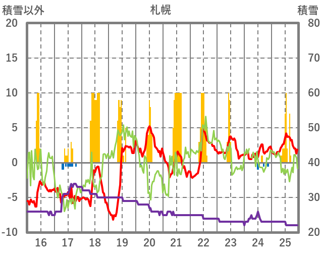 | 日 | 時 | 気温 | 降水 | 風向/風速 | 日照 | 積雪 | 降雪 |