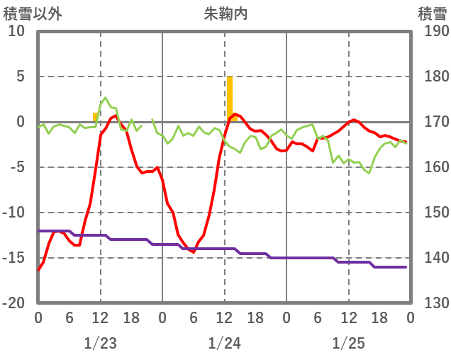 | 日 | 時 | 気温 | 降水 | 風向/風速 | 日照 | 積雪 | 降雪 |