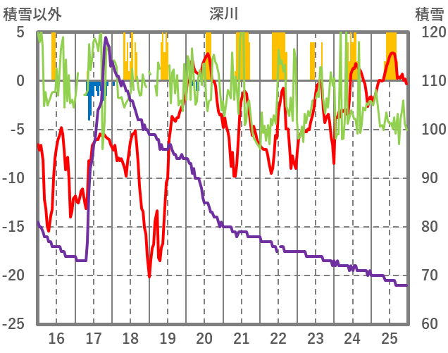 | 日 | 時 | 気温 | 降水 | 風向/風速 | 日照 | 積雪 | 降雪 |