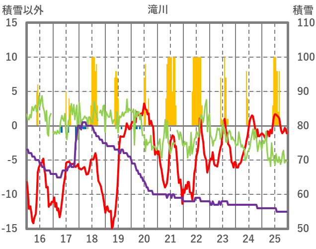| 日 | 時 | 気温 | 降水 | 風向/風速 | 日照 | 積雪 | 降雪 |