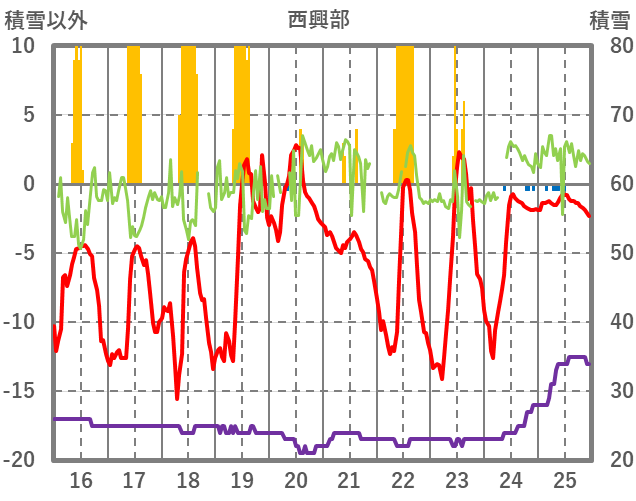 | 日 | 時 | 気温 | 降水 | 風向/風速 | 日照 | 積雪 | 降雪 |