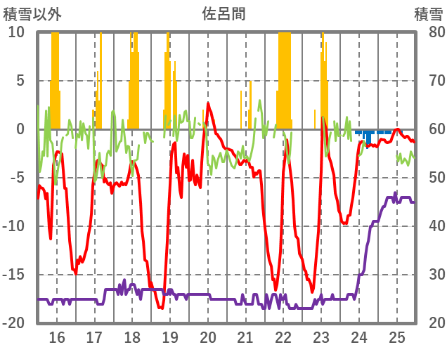 | 日 | 時 | 気温 | 降水 | 風向/風速 | 日照 | 積雪 | 降雪 |