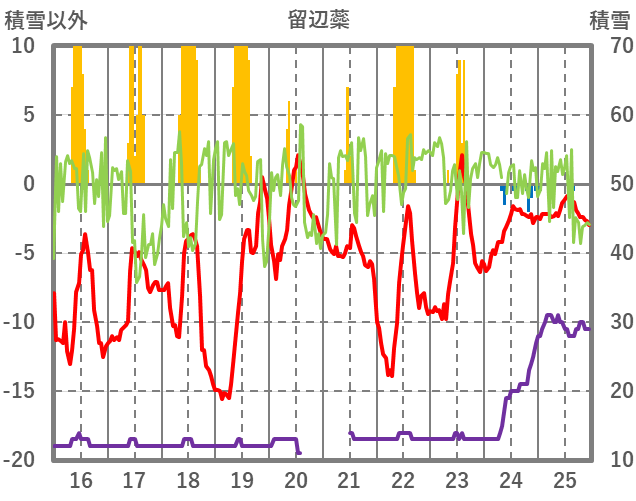 | 日 | 時 | 気温 | 降水 | 風向/風速 | 日照 | 積雪 | 降雪 |