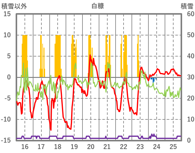 | 日 | 時 | 気温 | 降水 | 風向/風速 | 日照 | 積雪 | 降雪 |