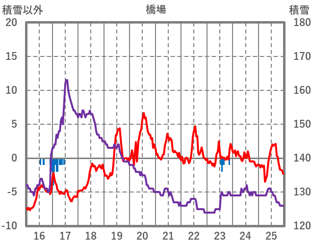 | 日 | 時 | 気温 | 降水 | 風向/風速 | 日照 | 積雪 | 降雪 |