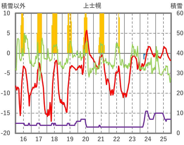 | 日 | 時 | 気温 | 降水 | 風向/風速 | 日照 | 積雪 | 降雪 |